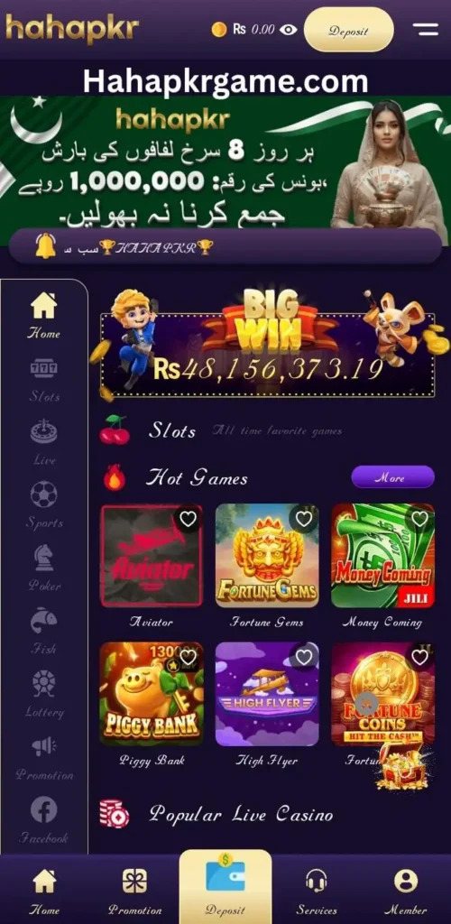 HAHAPKR APP is a trusted real money gaming app in Pakistan that supports local payment methods and popular casino-style games. The app features an easy-to-navigate interface, making registration, gameplay, deposits, and withdrawals quick and hassle-free. Its secure system and transparent processes make it a top choice for online earning in 2025.