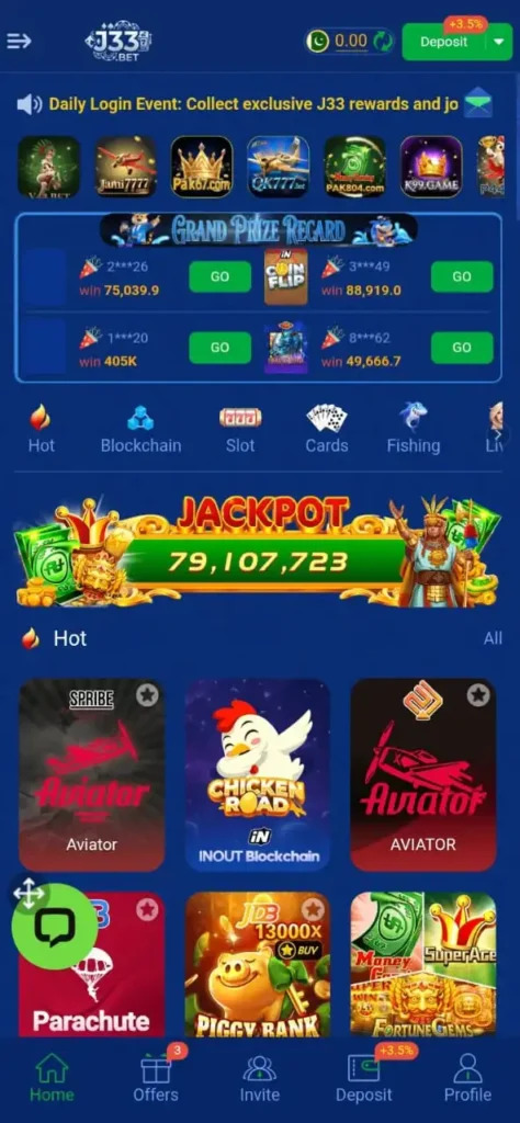 J33BET Game contains variety of games like, hot, blockchain, slot, card, fishing, live, and sport games. Moreover, it include games which are both conventional casino and new skill based games; Roullete, Mines, Aviator – every games has its own rules and structure to fit the diverse player types.